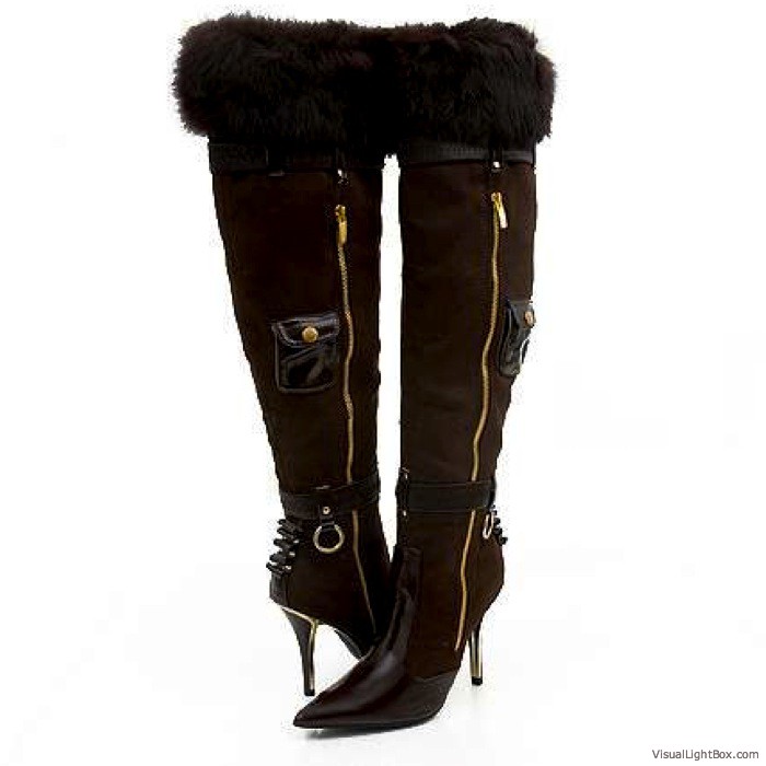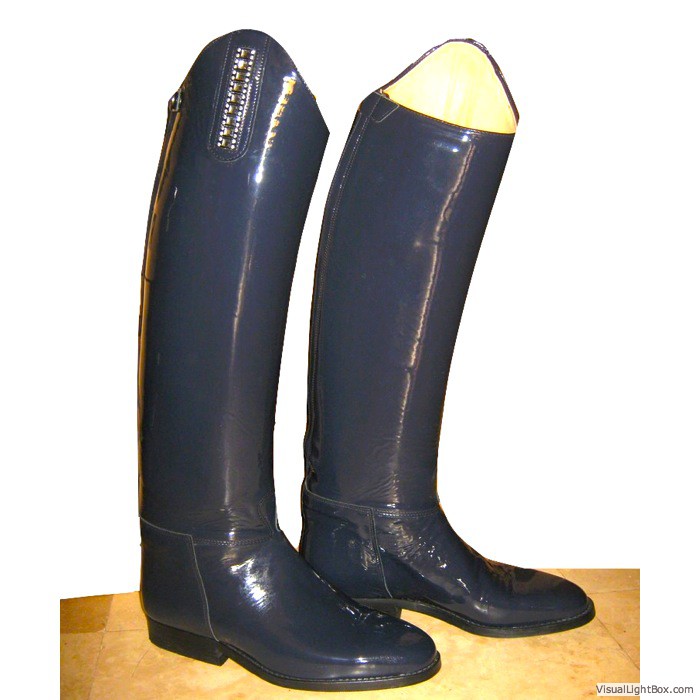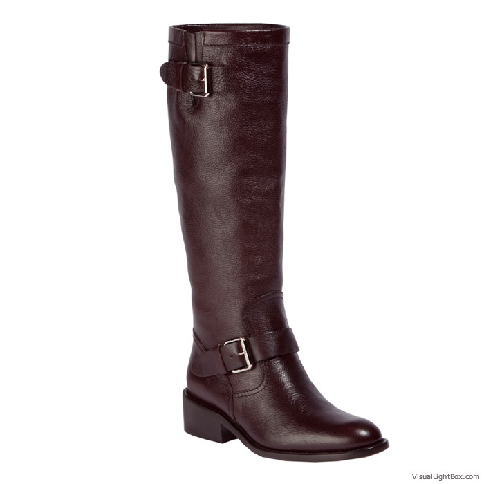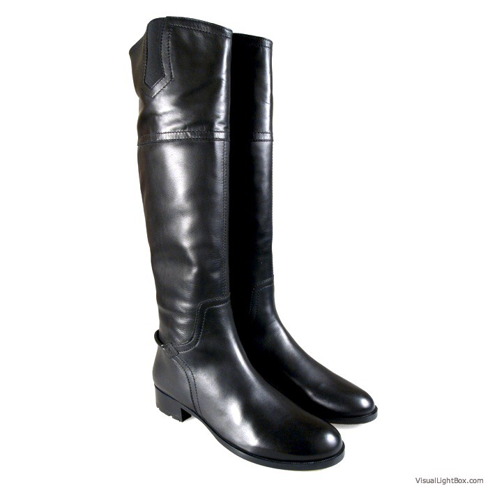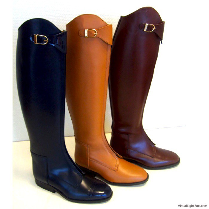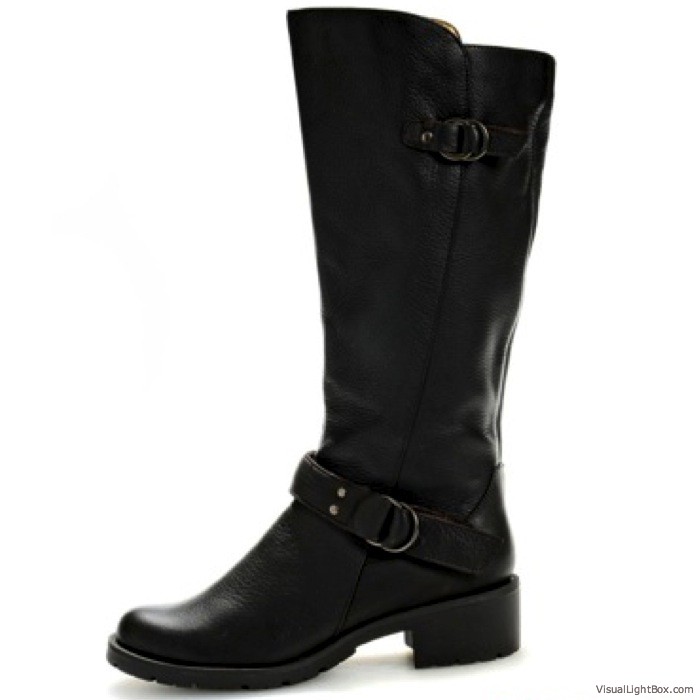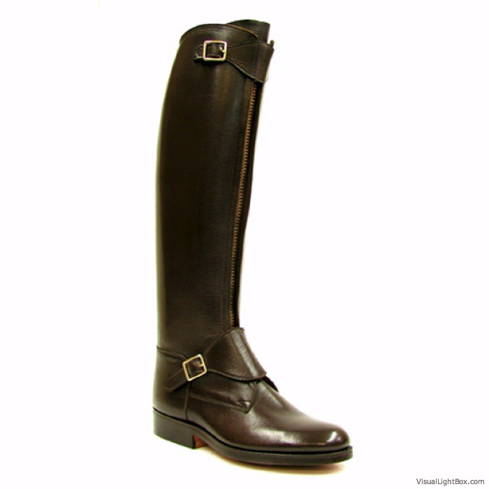 A striking Riding boot with contemporary sophistication.Offered in leather or suede,Straps with interlocking metallic accentSide zipper and goring,Fashionable metallic platform insert with lug sole ,Stacked heel ,Heel height: 3 inches